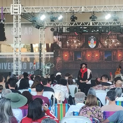 As atrações tiveram início às 16h30, com apresentação do CTG Rancho da Saudade, que encantou o público com danças tradicionalistas. Na sequência, o humorista Guri de Uruguaiana subiu ao palco e garantiu momentos de descontração e muitas risadas.